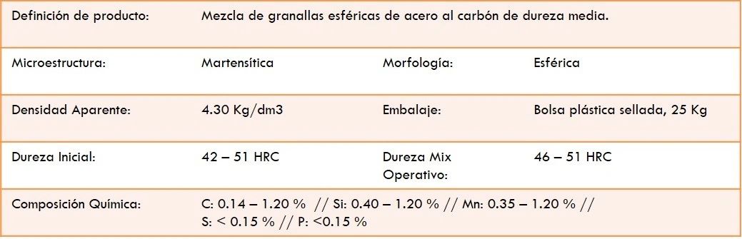 •Granallas esféricas de dureza media.